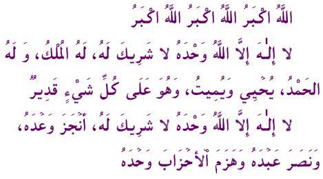 - الله أكبر، الله أكبر، الله أكبر، الله أكبر كبيرًا والحمد لله كثيرًا، إن الحمد والنعمة والشكر لك لا شريك لك، اللهم صل وسلم وبارك على سيدنا محمد وعلى آله وصحبه أجمعين.