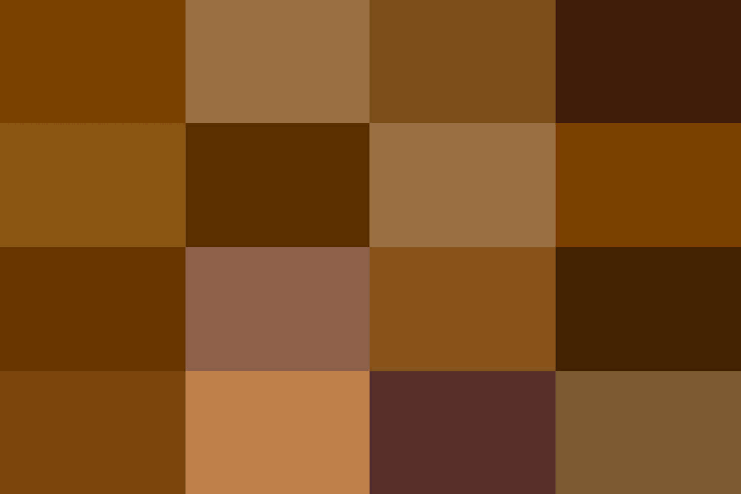 - من درجات اللون البني (البني الغامق، البني الفاتح، الكافيه، البندقي، الكاكاو، وغيرها من الدرجات الأخرى)