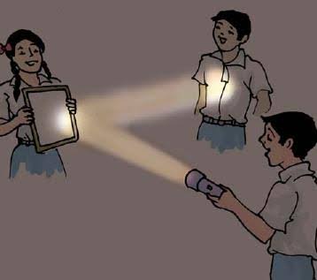 - كما ينعكس الضوء على الأجسام الملساء التي لا تسمح بمرور الضوء مثل المرآة.